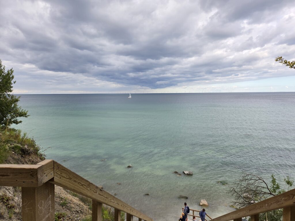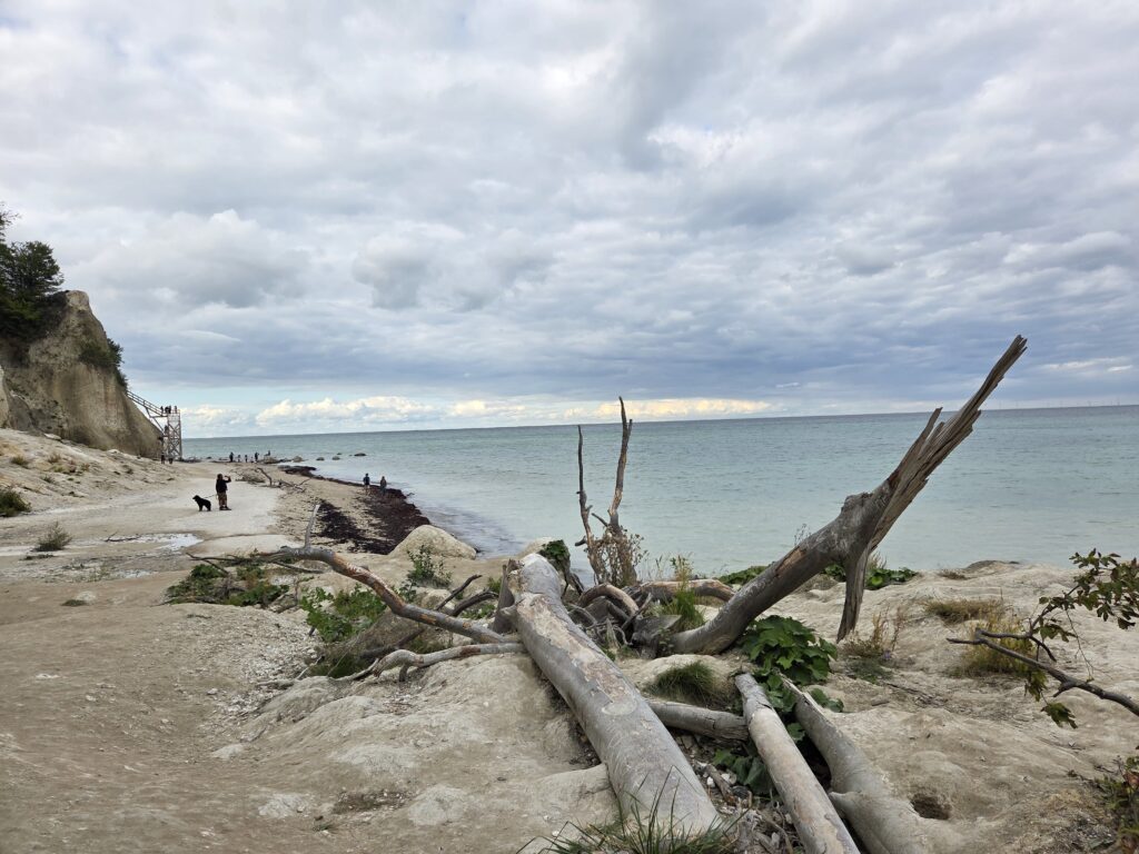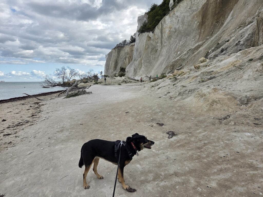 Nachdem ich an dem Tag nicht nur im Auto fahren wollte, beschloss ich die Mädels mit einem Abstecher zu den Kreidefelsen auf Møn zu überraschen. Die teils spannende Anreise zum Geosphären Reservat Møns Klint wurde dann auch noch mit den hunderten Holzstufen belohnt. Aber sogar Amy schaffte den Weg runter an den Strand und auch wieder zurück hoch.