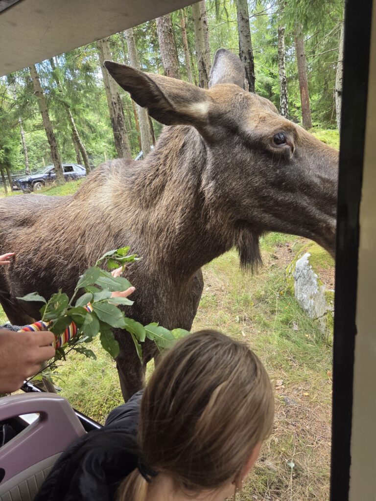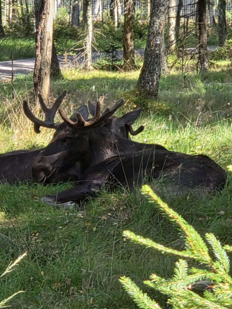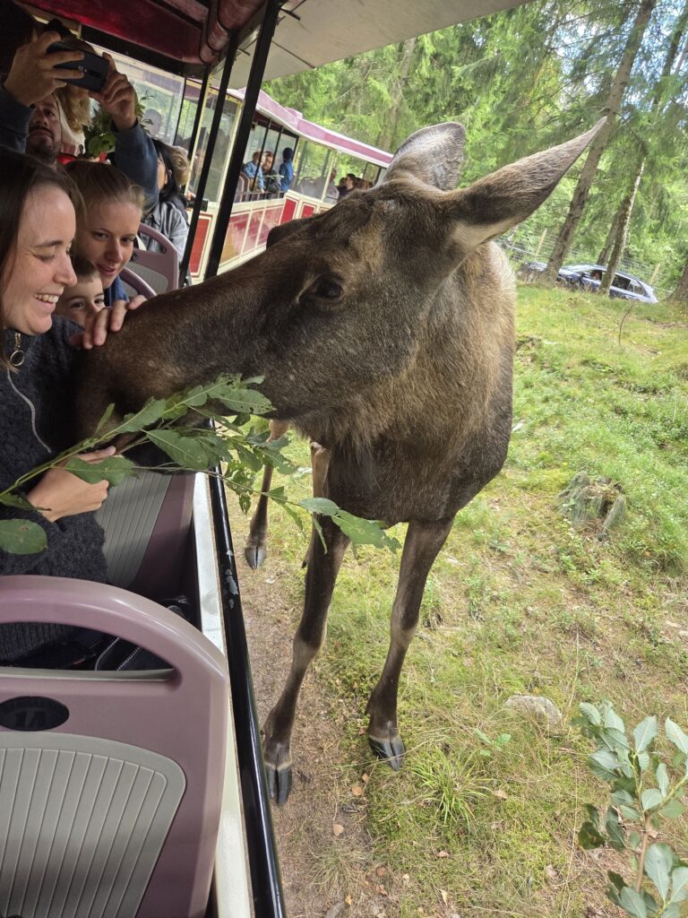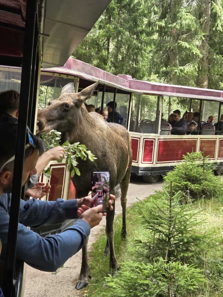 Flugs raus aus der Industrie und Hafen Stadt Helsingborg Richtung Nordosten, Ziel ist Markaryd. Der dortige Elch Park mit seiner Älg Safari war das Ziel. Vor Ort durften dann Mandy mit Lea mit dem Bimmel-Zug auf Safari gehen, ich blieb mit Amy beim Camper.